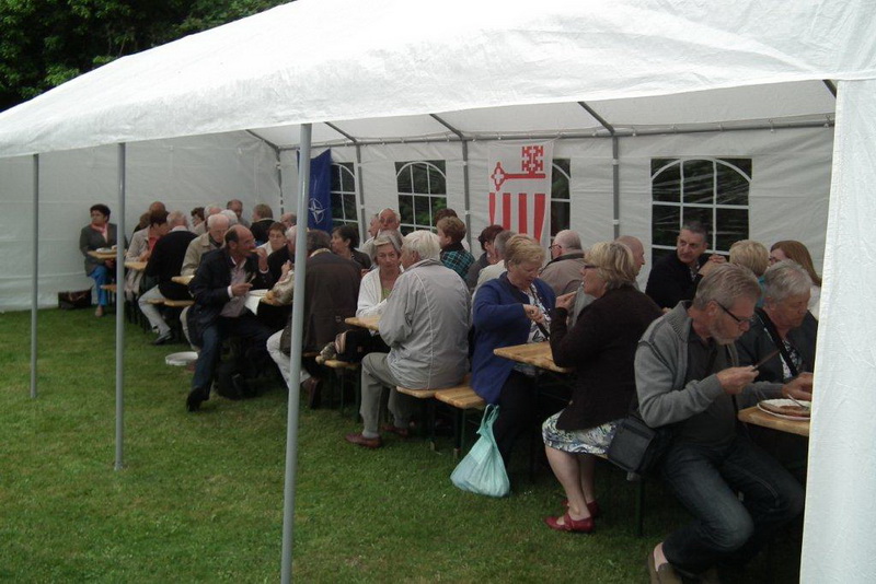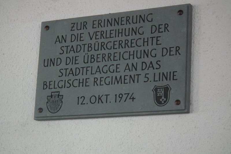 2012 jährte sich zum 20. Mal der Tag, an dem das 5. belgische Linieregiment nach 43 Jahren Stationierung die Stadt Soest verlassen hat. Aus diesem Anlass kamen etwa 230 ehemalige Angehörige vom 01. - 03. Juni in die frühere Garnisonsstadt. Nach dem Barbecue am Abend des 01. Juni waren die Höhepunkte am 02. Juni die Enthüllung einer Gedenktafel am Rathaus, ein Empfang im Blauen Saal des Rathauses, das Mittagessen in der heutigen Mensa, ehemals Mannschaftsspeisesaal in der damaligen Rumbekekaserne, und das abendliche Regimentsdinner wieder im Blauen Saal des Rathauses. Unser Panzergrenadierbataillon 193 hatte seit 1965 eine Patenschaft zur 5. Linie und so waren auch Angehörige unseres Traditionsverbandes Gäste der 5. Linie.