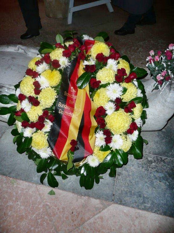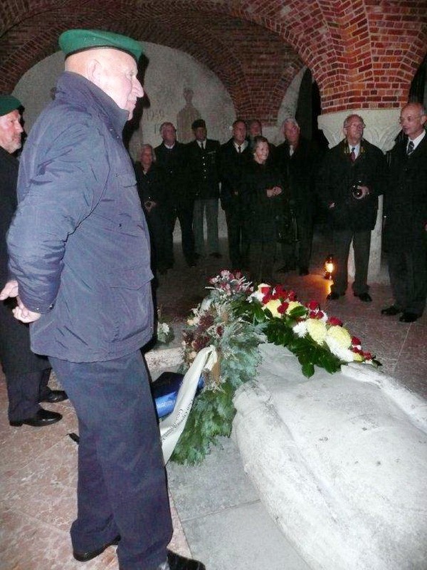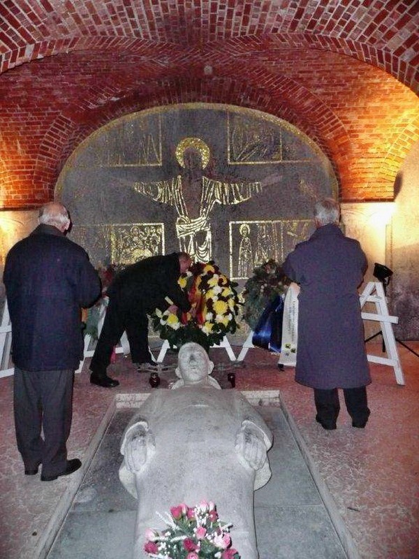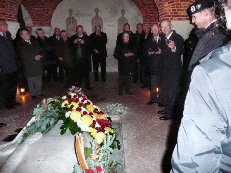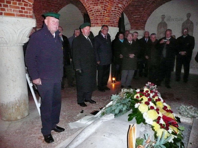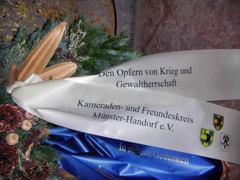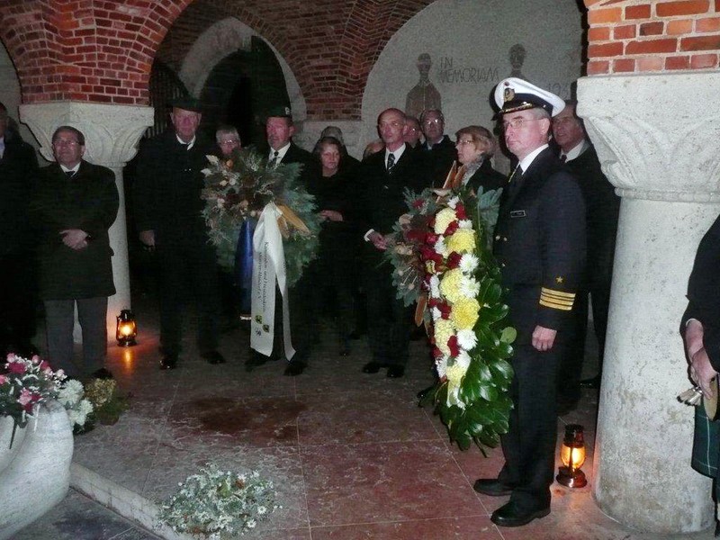 Danach wurde auf den Soldatenfriedhof LOMMEL verlegt. Nach einer Führung durch die Friedhofsanlage fand im Anschluß in der Krypta die Kranzniederlegung statt. Im Beisein des deutschen Militärattachee in Belgien Herrn Fregattenkapitän Träger wurde u.a. auch ein Kranz des Kameraden- und Freundeskreis e.V. an der Gedenkstelle gelegt.