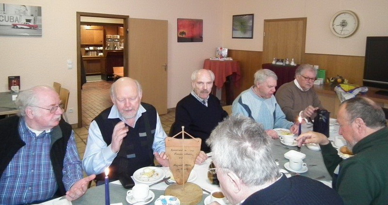 Gemeinsames Frühstück in der UHG der Lützow-Kaserne - Es waren dabei die Kameraden: Heinrich Klaßen, Karl-Heinz Eichner, Peter Gansweidt, Rolf Dieter Kappen, Rolf Harke, Willi Mersmann, Friedrich Wupper, Hermann Beisenbusch, Erich Riediger, Dieter Gräber, Bernhard Achterholt, Toni Meier, Horst Schmidt, Dieter Körner, Karl-Heinz Owczarski, Andreas Patzer und Wilfried Manneck.