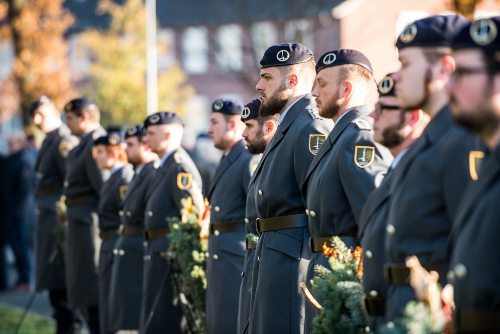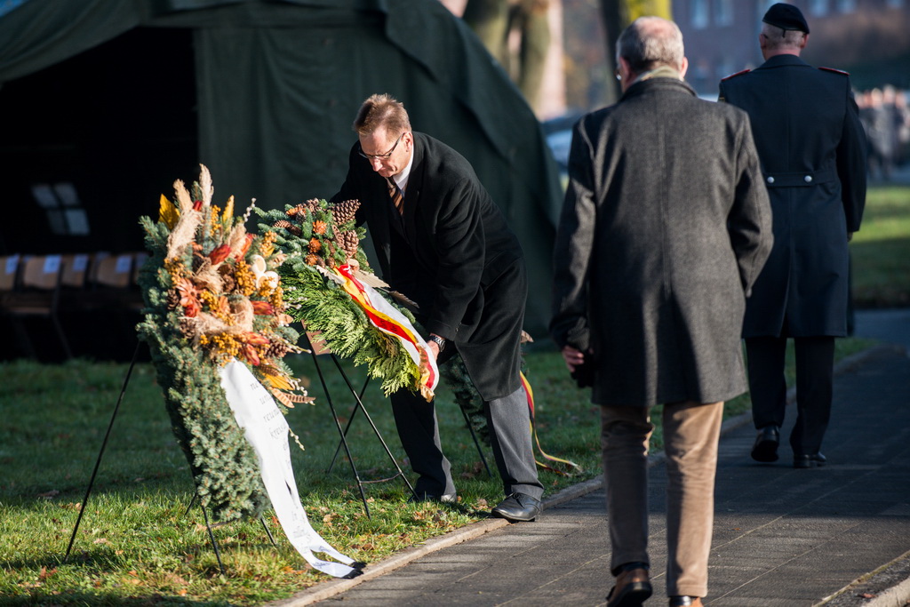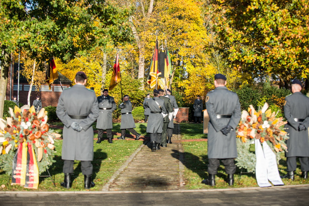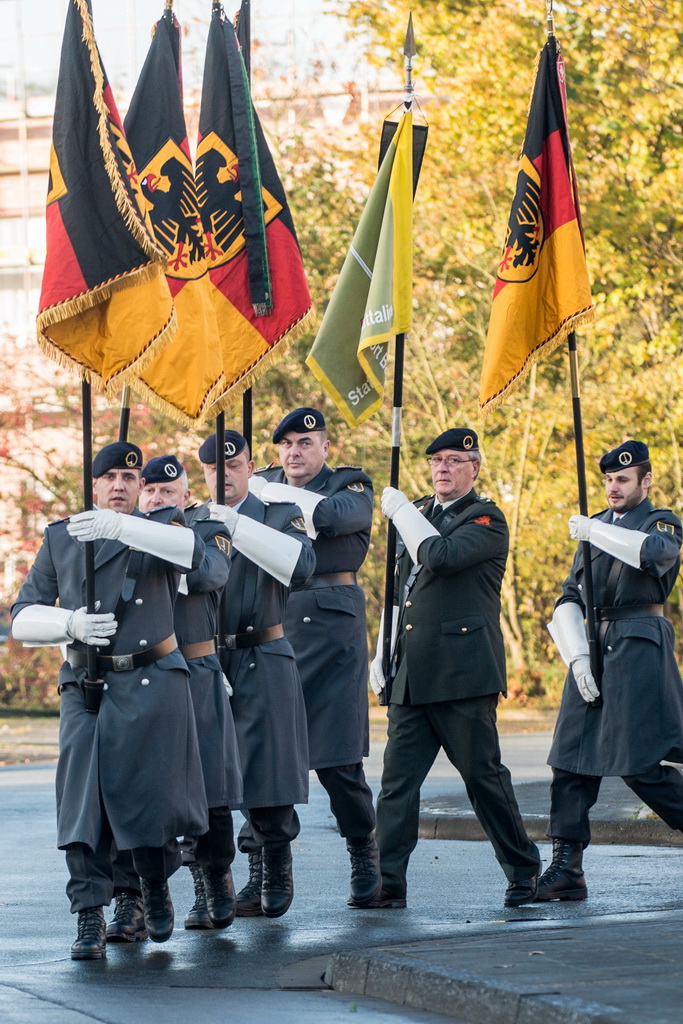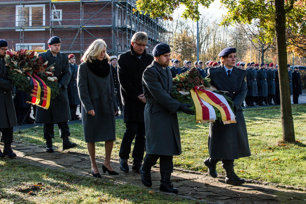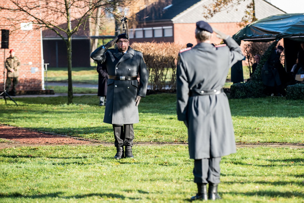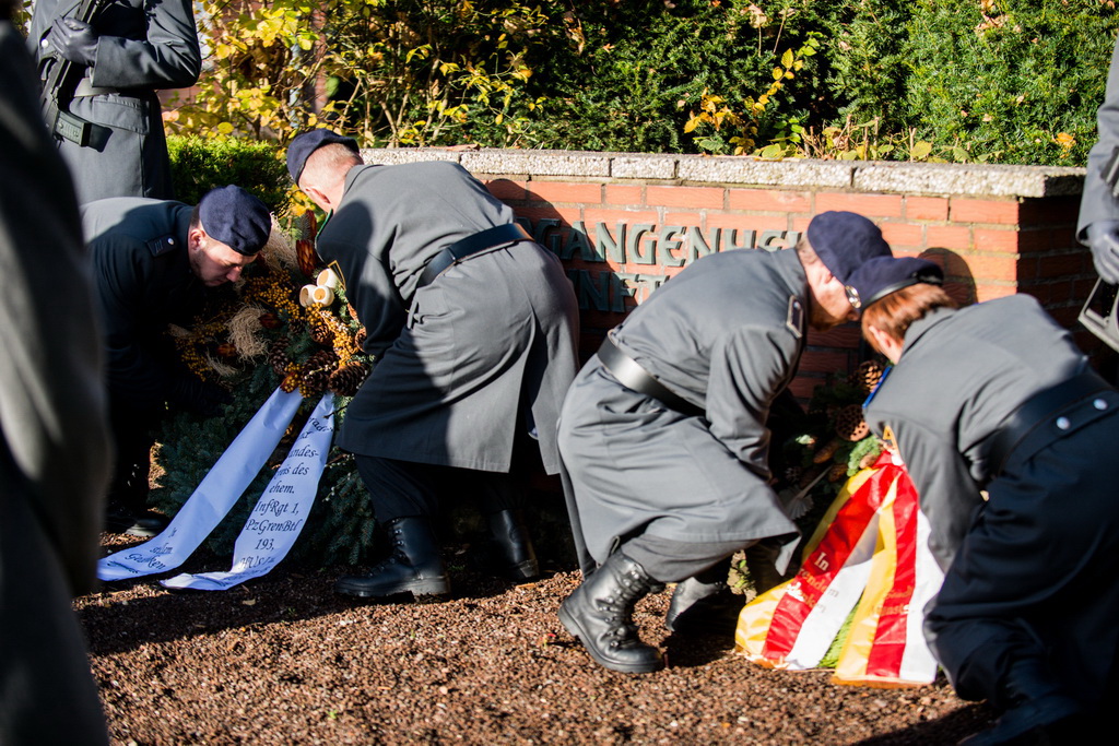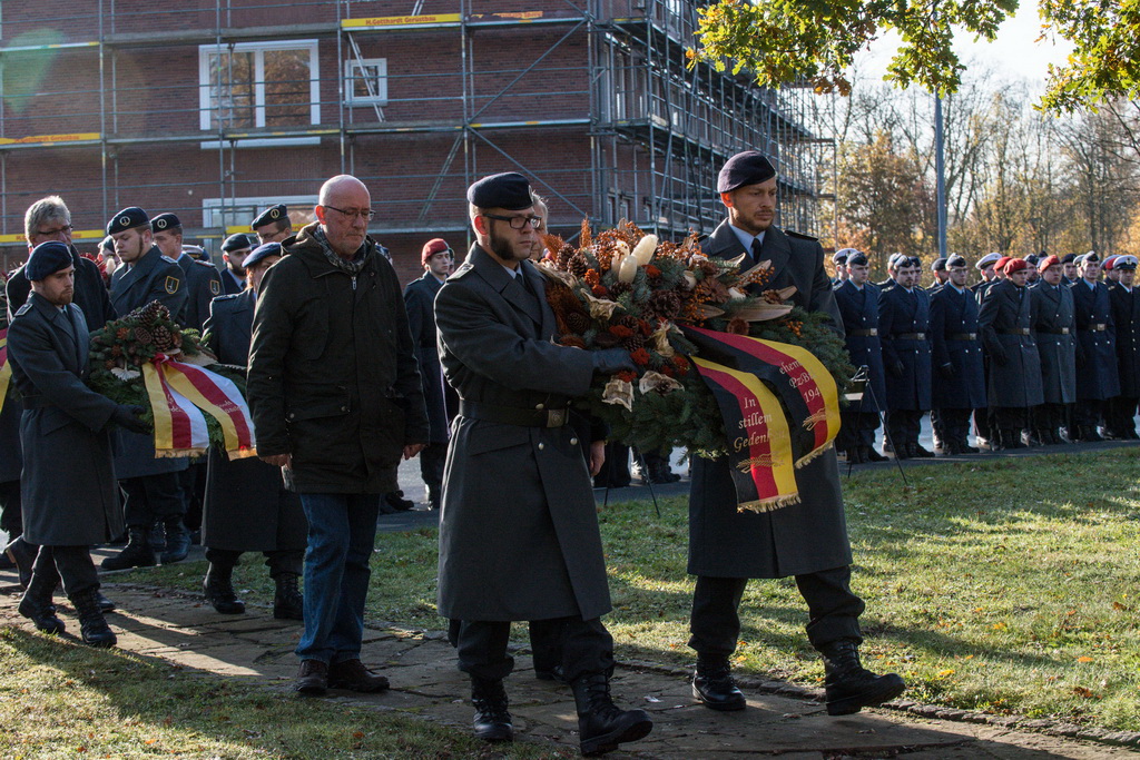 40 Fotos von der Kranzniederlegung zum Volkstrauertag mit dem St/UstgBtl des 1. D/NL Korps Münster im Ehrenhain der Lützow-Kaserne.