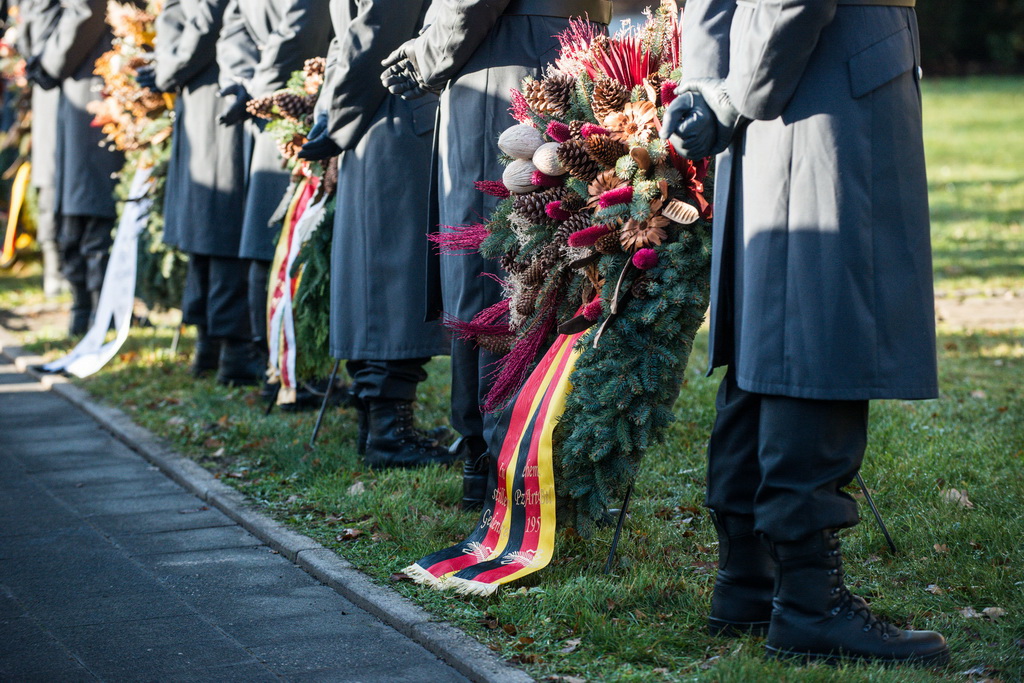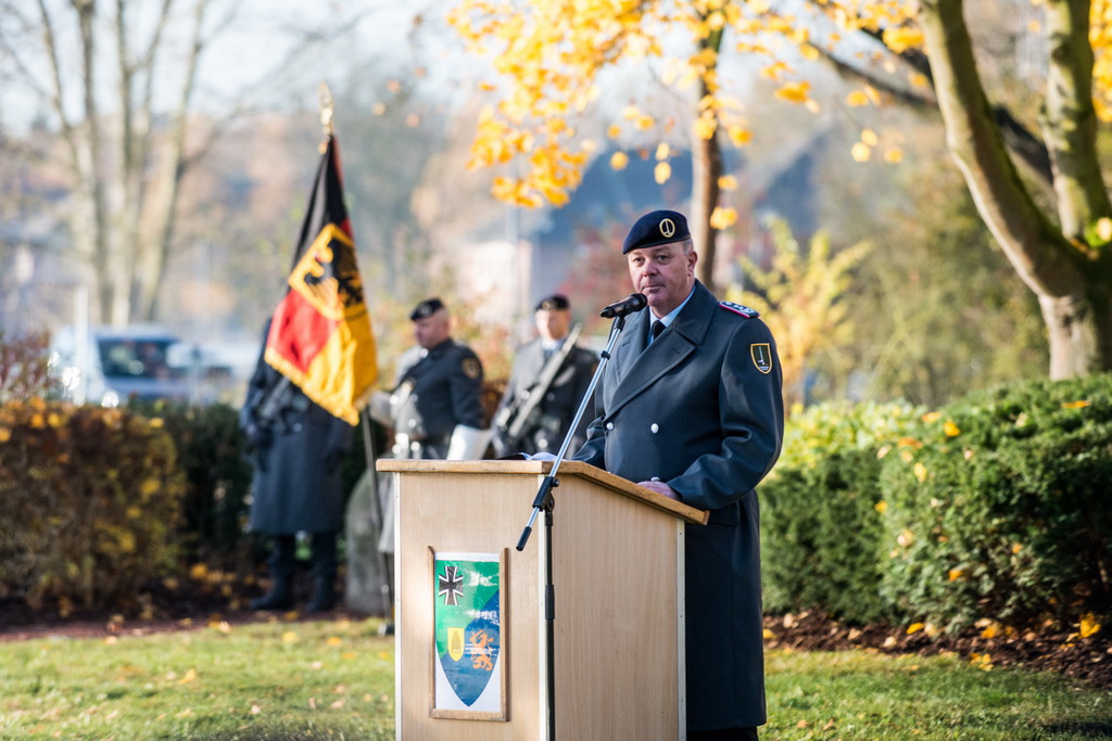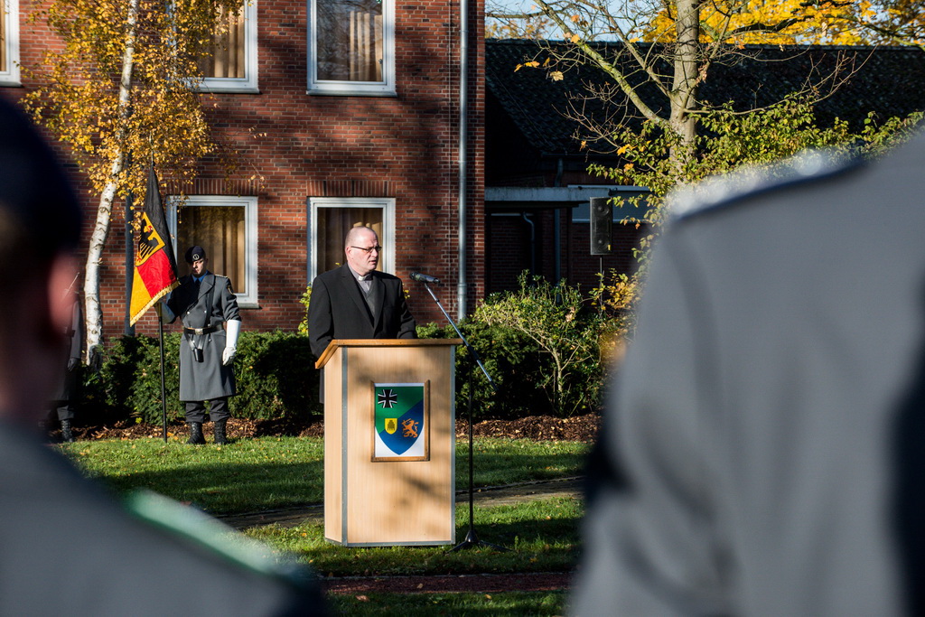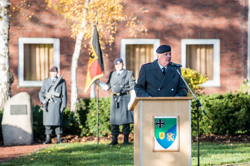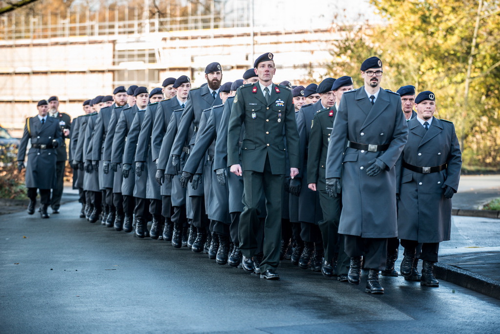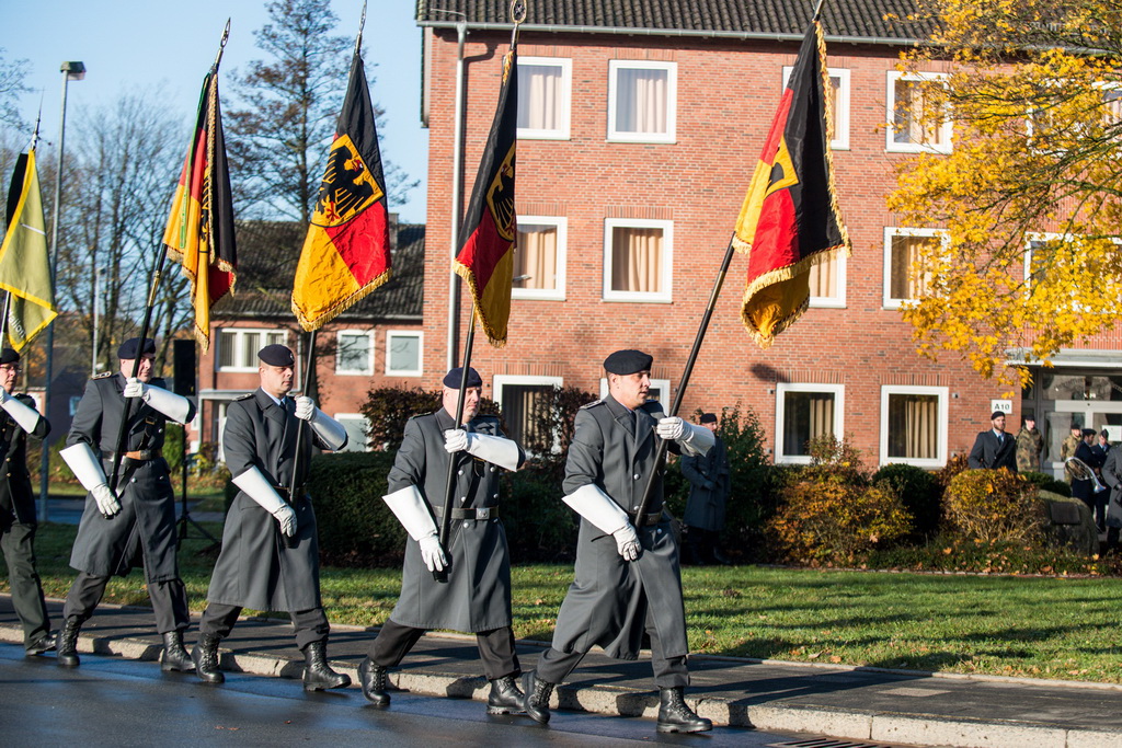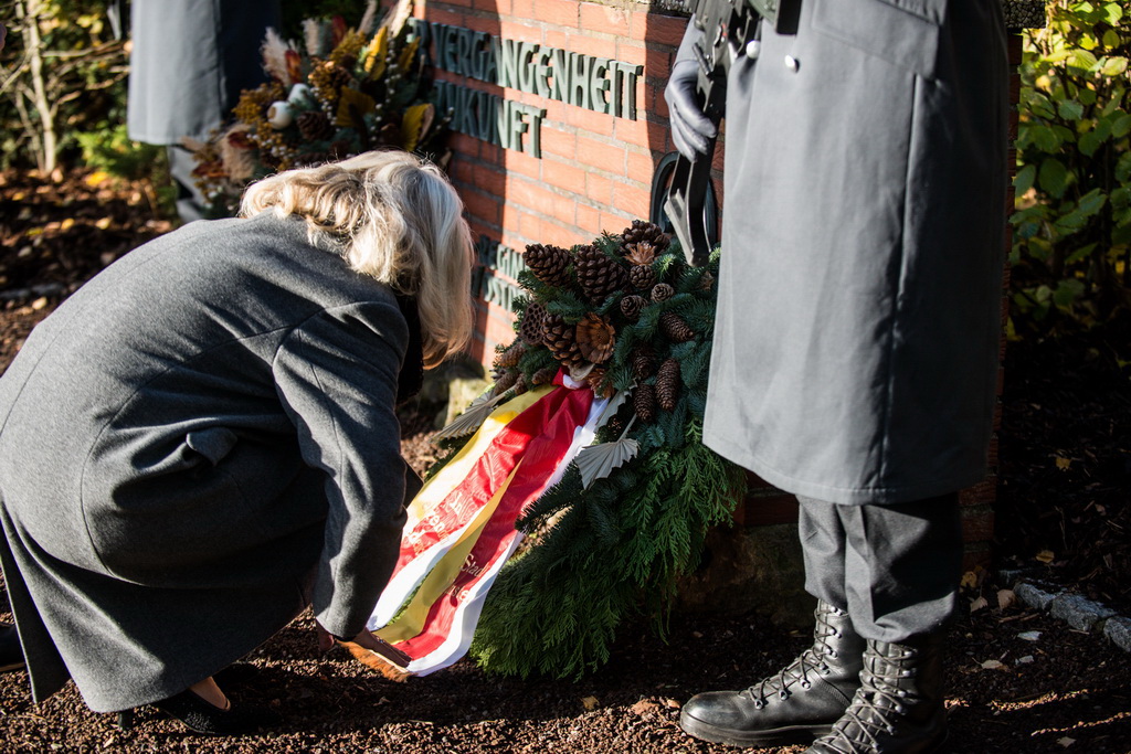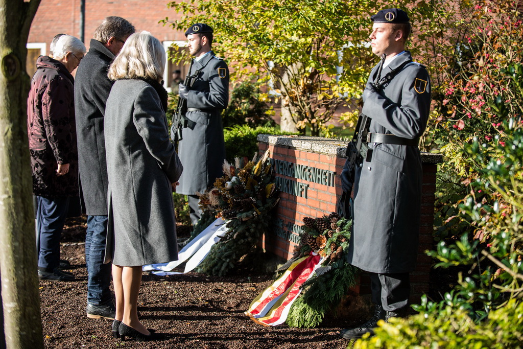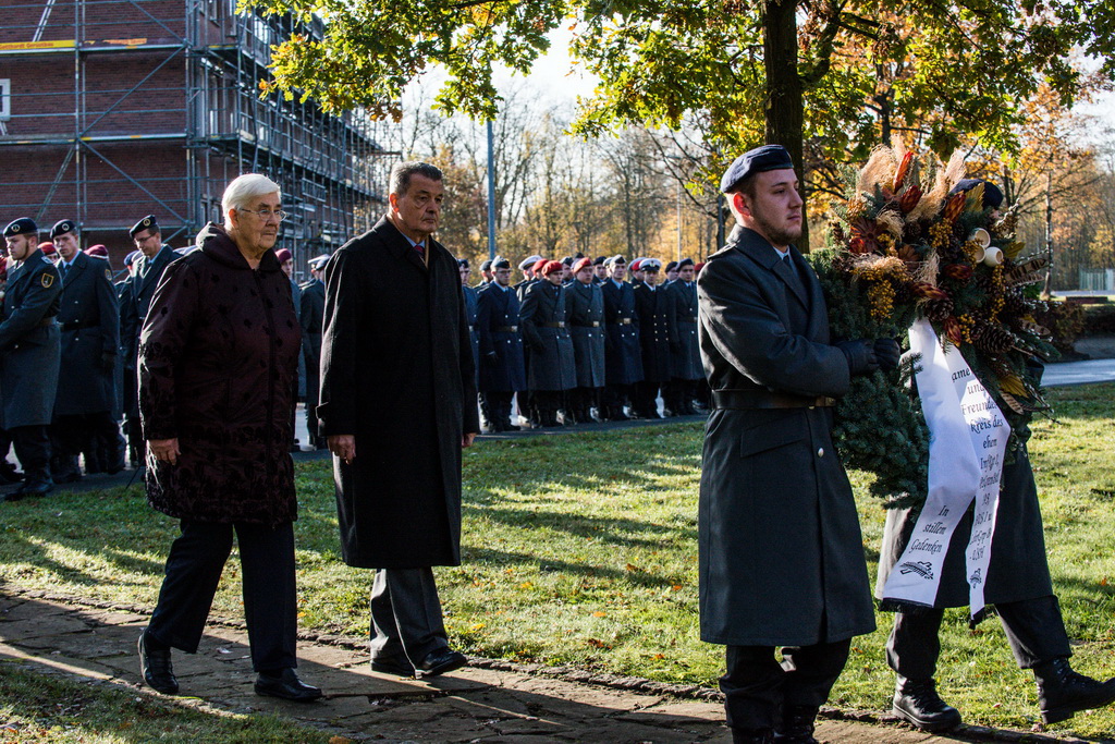 40 Fotos von der Kranzniederlegung zum Volkstrauertag mit dem St/UstgBtl des 1. D/NL Korps Münster im Ehrenhain der Lützow-Kaserne.
