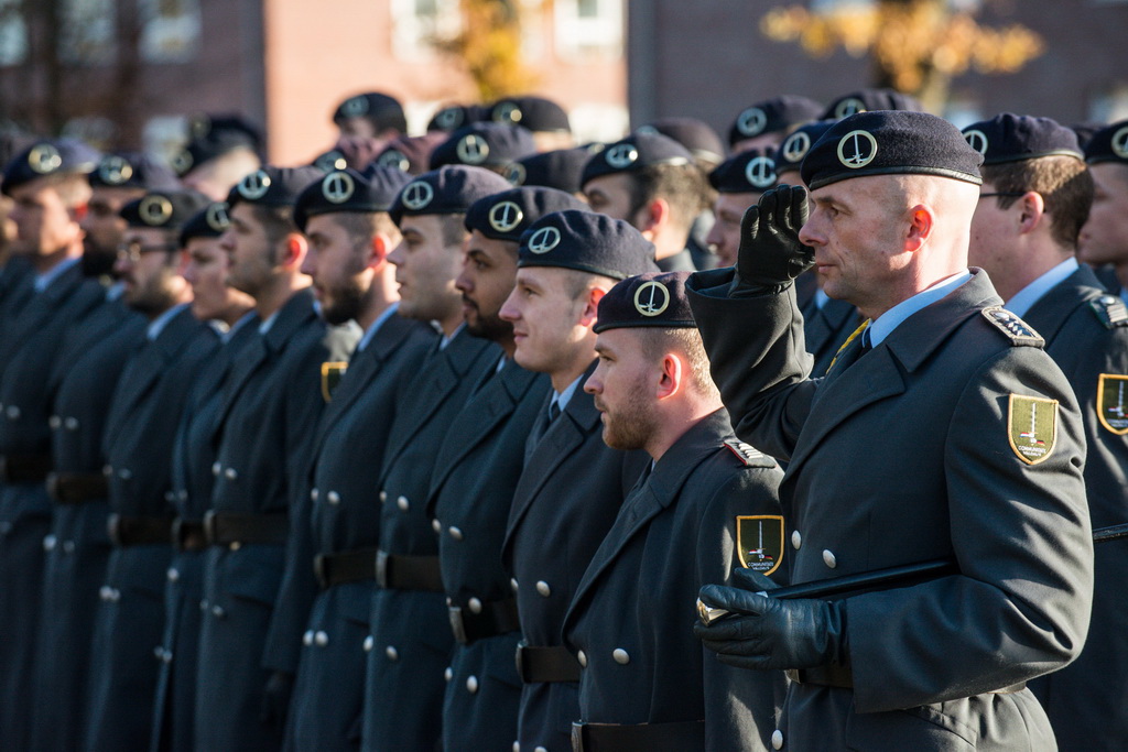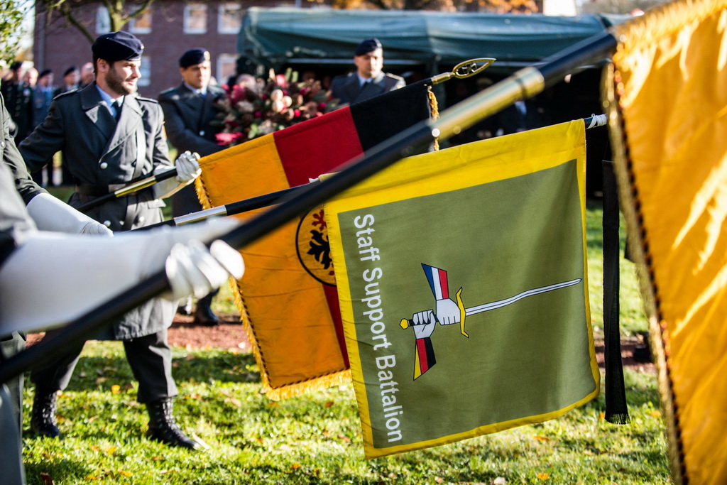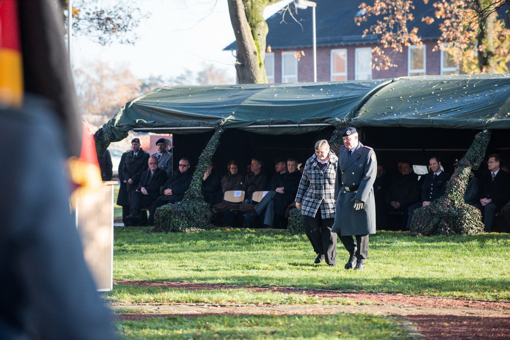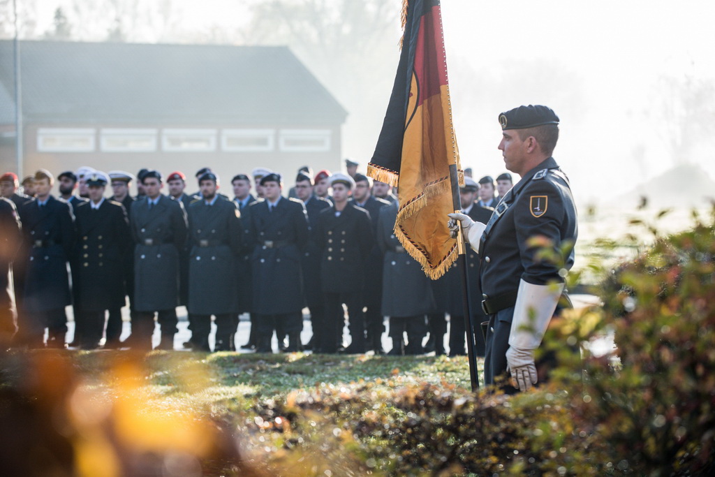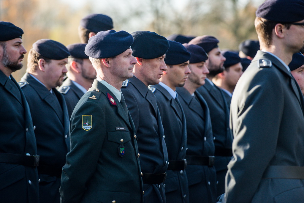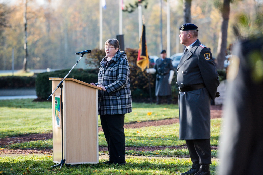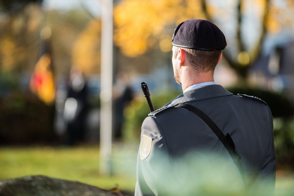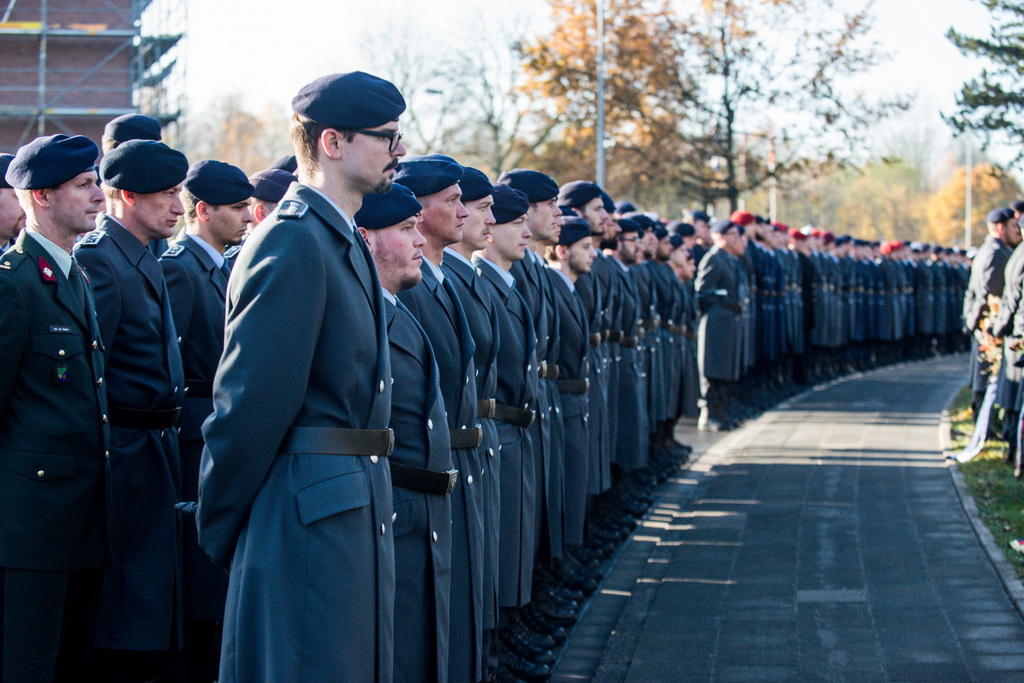 40 Fotos von der Kranzniederlegung zum Volkstrauertag mit dem St/UstgBtl des 1. D/NL Korps Münster im Ehrenhain der Lützow-Kaserne.