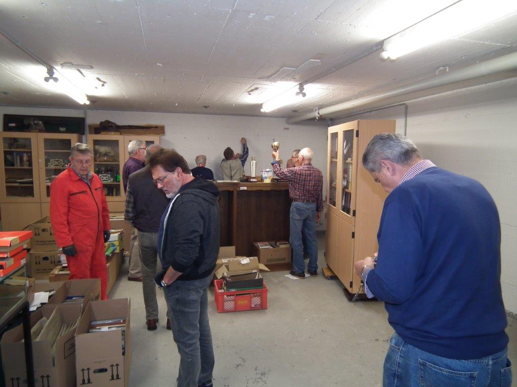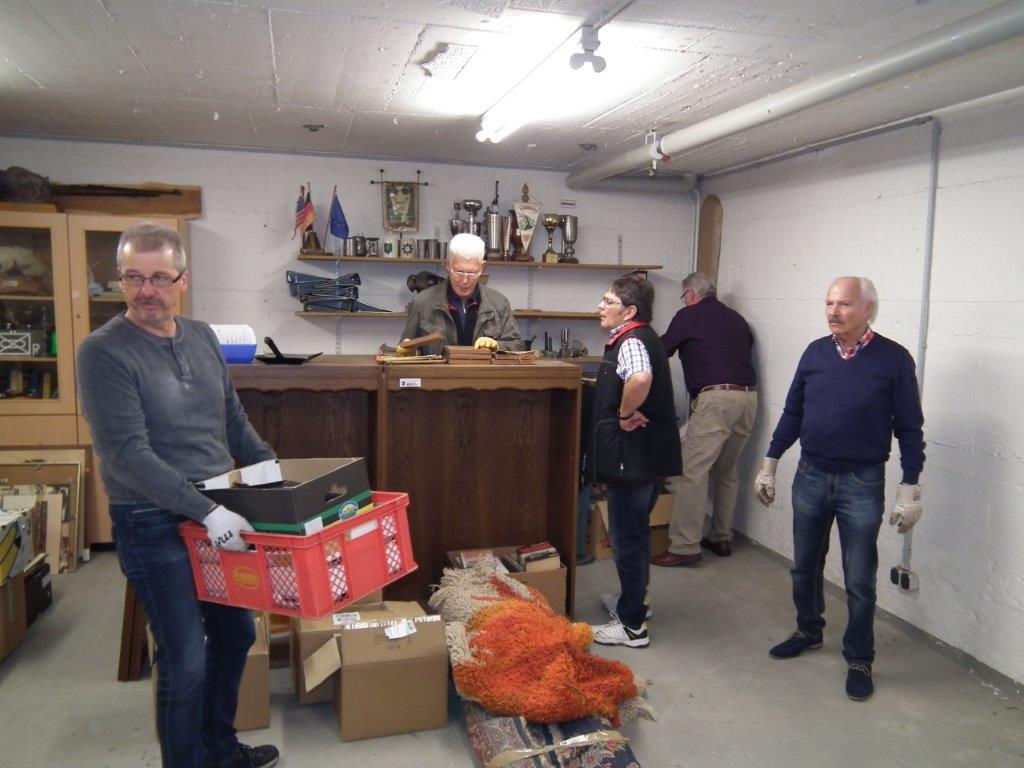 Nach dem Frühstück wurde der Keller des Traditionsraumes mit vielen Helfern gesichtet und aufgeräumt.