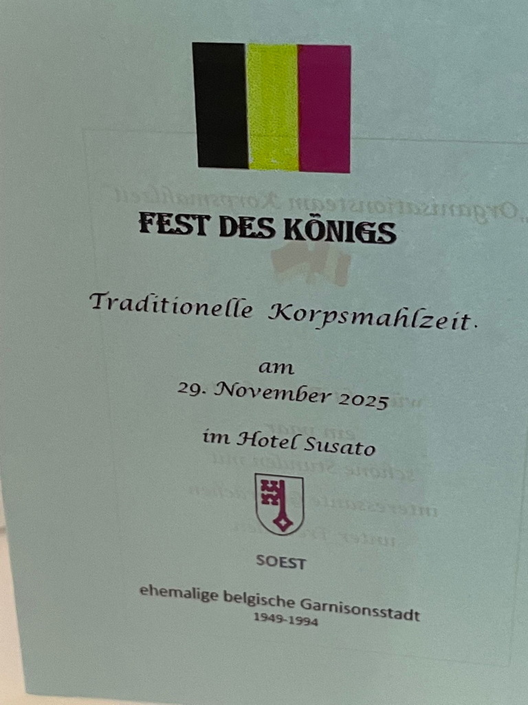 Auf Einladung unserer belgischen Freunde von den Anciens 5. Linie nahmen an der Korpsmahlzeit am 29.11.2025 in Soest folgende Mitglieder des Kameraden- und Freundeskreis e.V. Teil; Jürgen Arndt, Franca & Peter Tappert, und Helga Schäper & Wilfried Manneck.